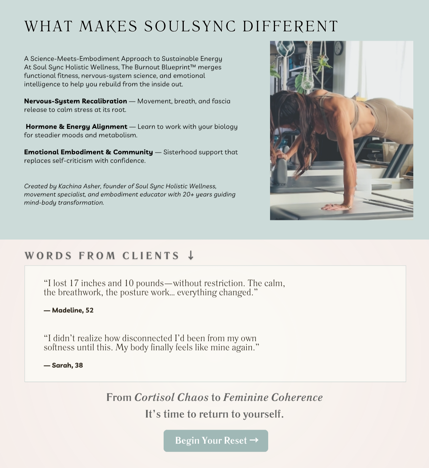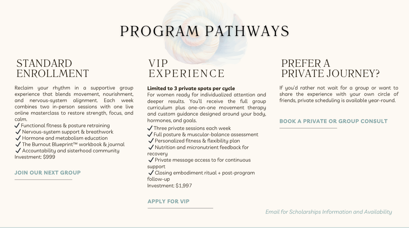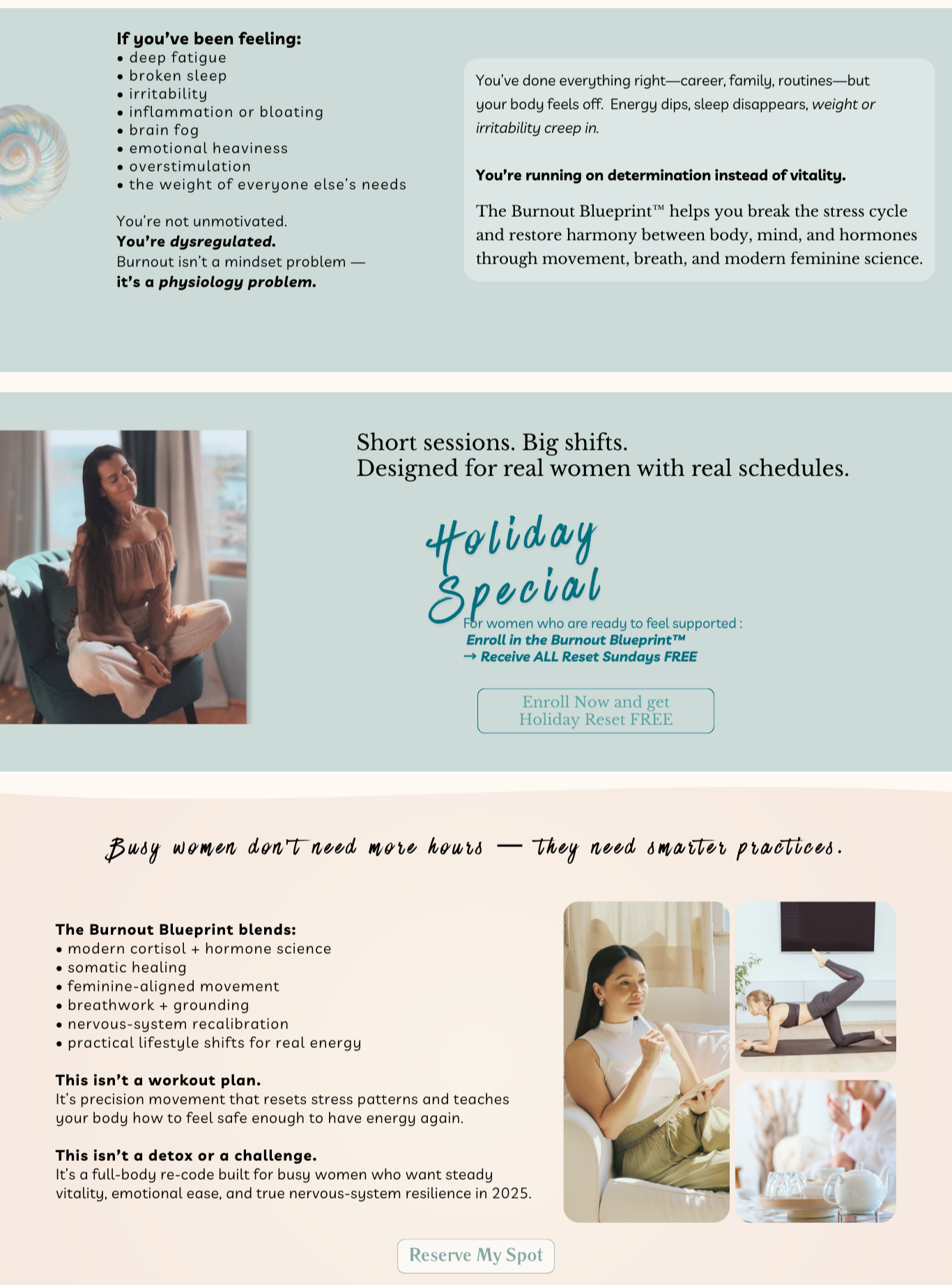 Reset stress and restore energy with The Burnout Blueprint™ — a 6-week hybrid program uniting movement, mindfulness & modern wellness science.